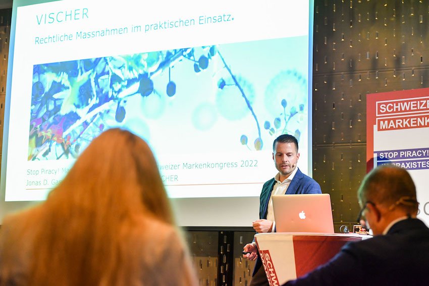 Kaum eine Branche ist heute vor Fälschungen sicher, wobei sich der Handel mit gefälschter Markenware zunehmend online abspielt. Immer häufiger werden Fälschungen dabei in Kleinstmengen importiert. Wo setzen rechtliche Massnahmen im Kampf gegen Markenpiraterie an und wie werden sie effizient und effektiv eingesetzt? Diese Fragen beantwortete Jonas D. Gassmann, LL.M., CIPP/E, Rechtsanwalt, Managing Associate, VISCHER beim Schweizer Markenkongress.